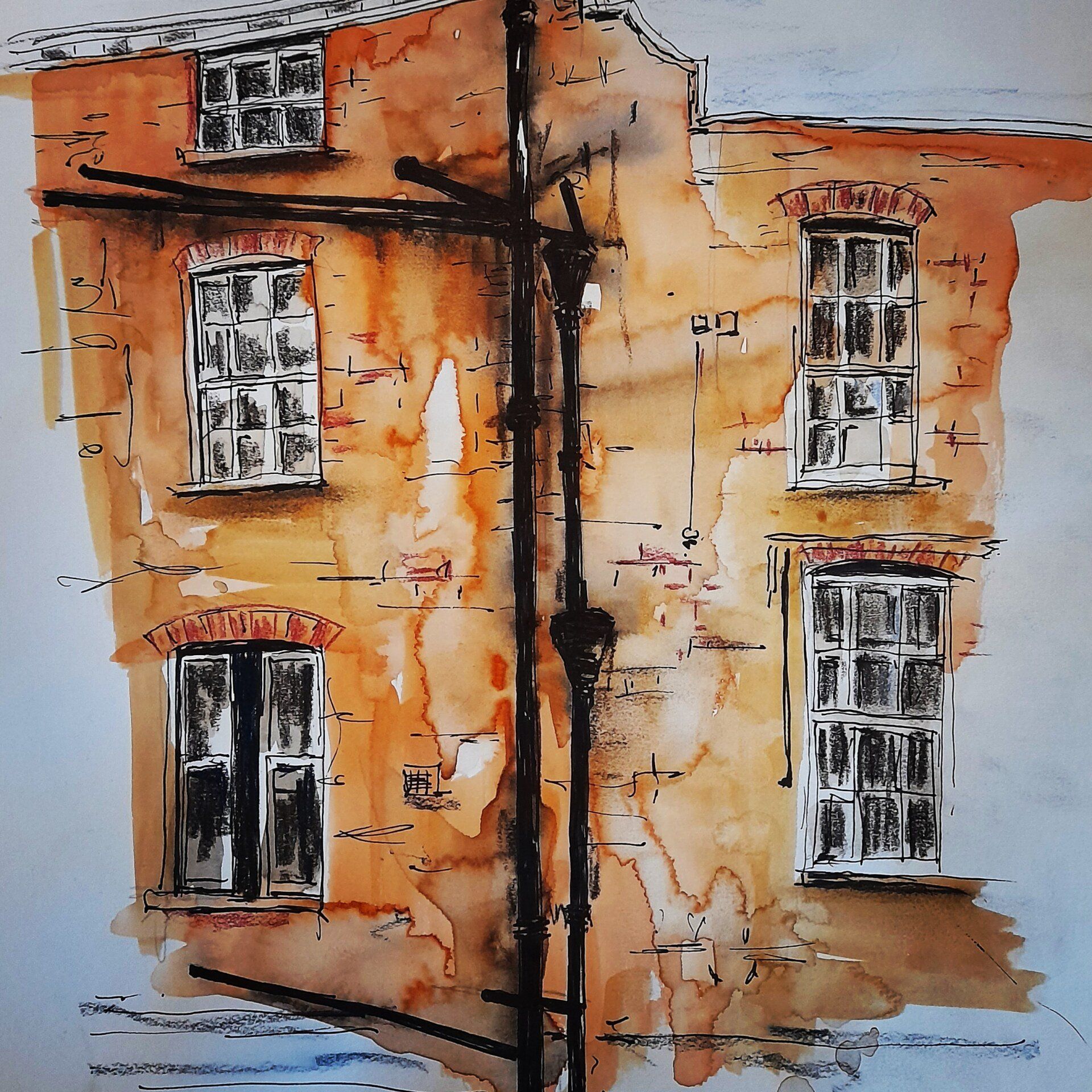 Julie Gayle Balliu, Drainpipes, Canterbury - The inconsequential features of an ancient house provide us with an insight into human progression whilst also allowing us to spectate the rather unemotional history of architecture entwined with human struggle for a place called home. Both functional and decorative, the coal-black iron drainpipes stretch out like maternal tentacles, hugging the handmade orange bricks from times past and map out intimate details of the interior washrooms by their entry and exit points.
