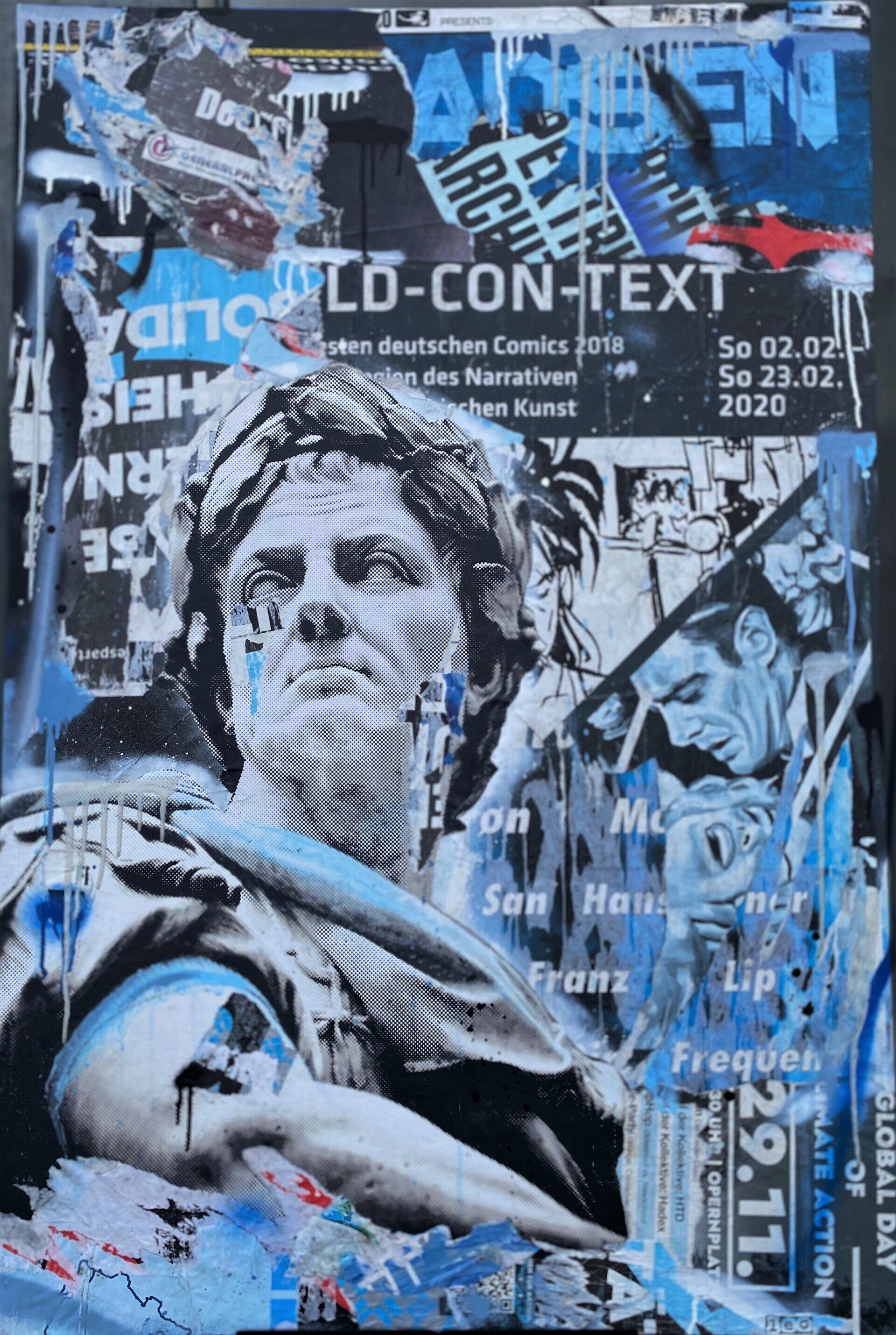 Leo Rebella, CAESAR - I use ripped street posters that I collect in urban hotspots. Then I create abstract raw backgrounds, that inherent hundreds of messages and information fragments from past events, concerts, markets and parties. Our time in life is running so fast. We should be more aware of this, make more of our lives, do the things we want. Be a rebel! Write your own story, finally be yourself!