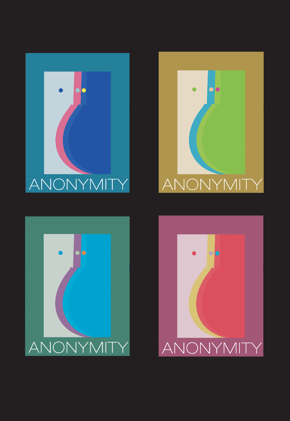 Chiara Zhu, Anonymity - The graphic illustration artwork tackles the topic of anonymity as a constant flow of human transformations. Three heads emerge from the left side of the page, building up a symbolic imagery of three human profiles which overlapped with each other. They slowly lose their connotation, at the same time the graphic silouhettes create an empty space almost complementary with them, leaving an intense colorful space which stands for the ‘other’, the nature. It can also be read as a creepy presence and an asymmetrical representation of human relationships with nature.