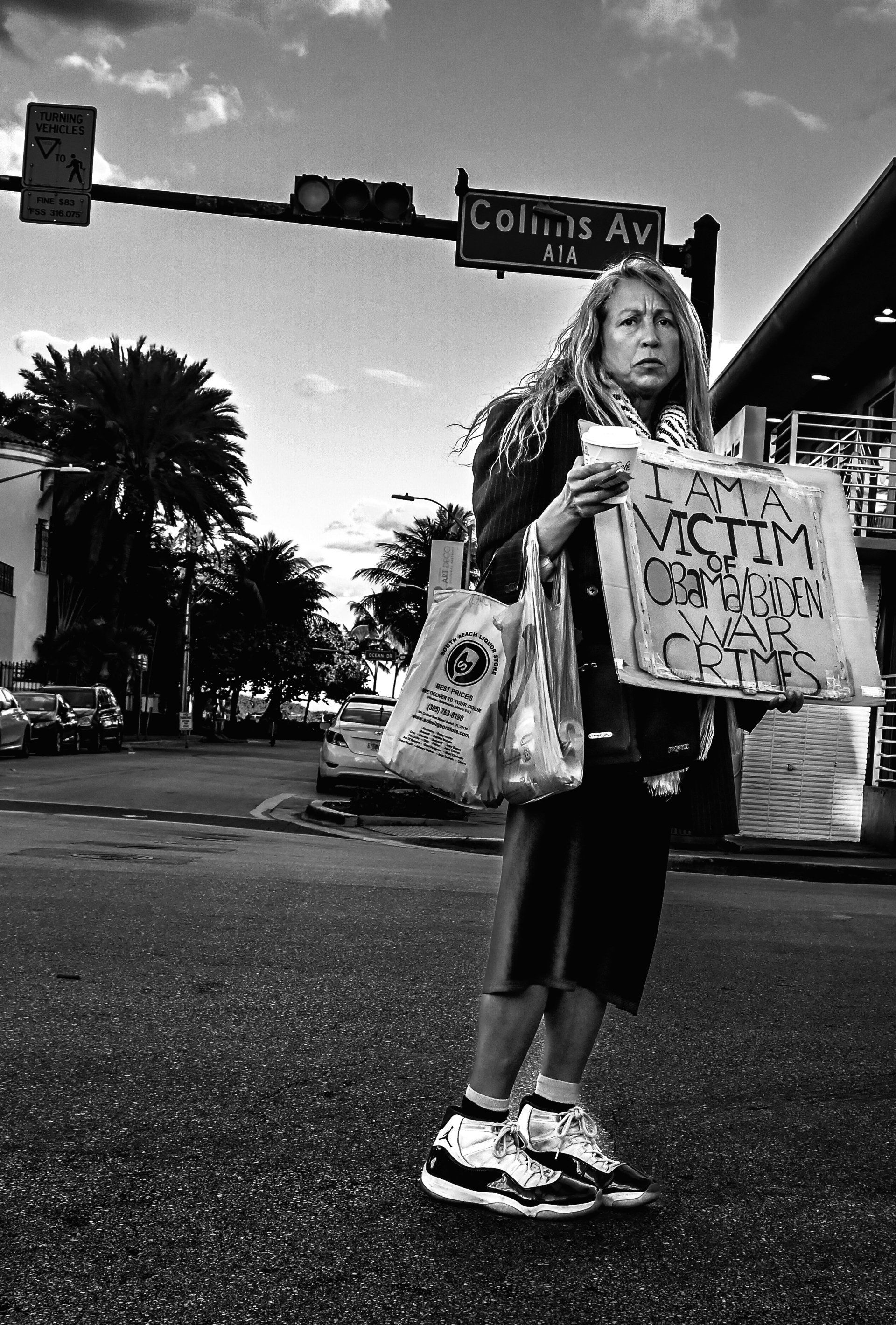 Jeff Sheel, Downtown Desperation - A photography of my ongoing project “downtown street stories” captured in Miami February 2022. Always waiting for the right person to walk into the frame with a unique expression on their face. Since the person is not aware of the camera the viewer gets to see real life impressions from the flow of time. My approach to street photography is capturing those magical moments of ordinary life, particularly of people you would look at on the street.