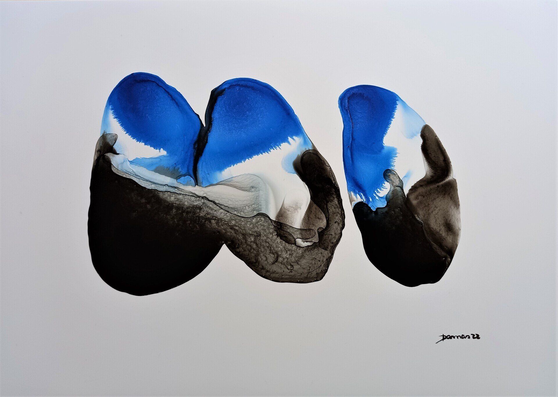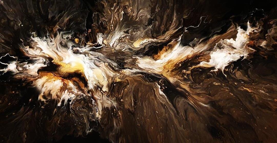 Cynthia Hellemink, Conception - Every abstract work is based on reality. This work was created by zooming in on the insides of several oysters that I have found on the beach nearby. You can see a whole new world emerging reminiscent of the emergence of new life. In the womb or in the universe. It’s all connected.