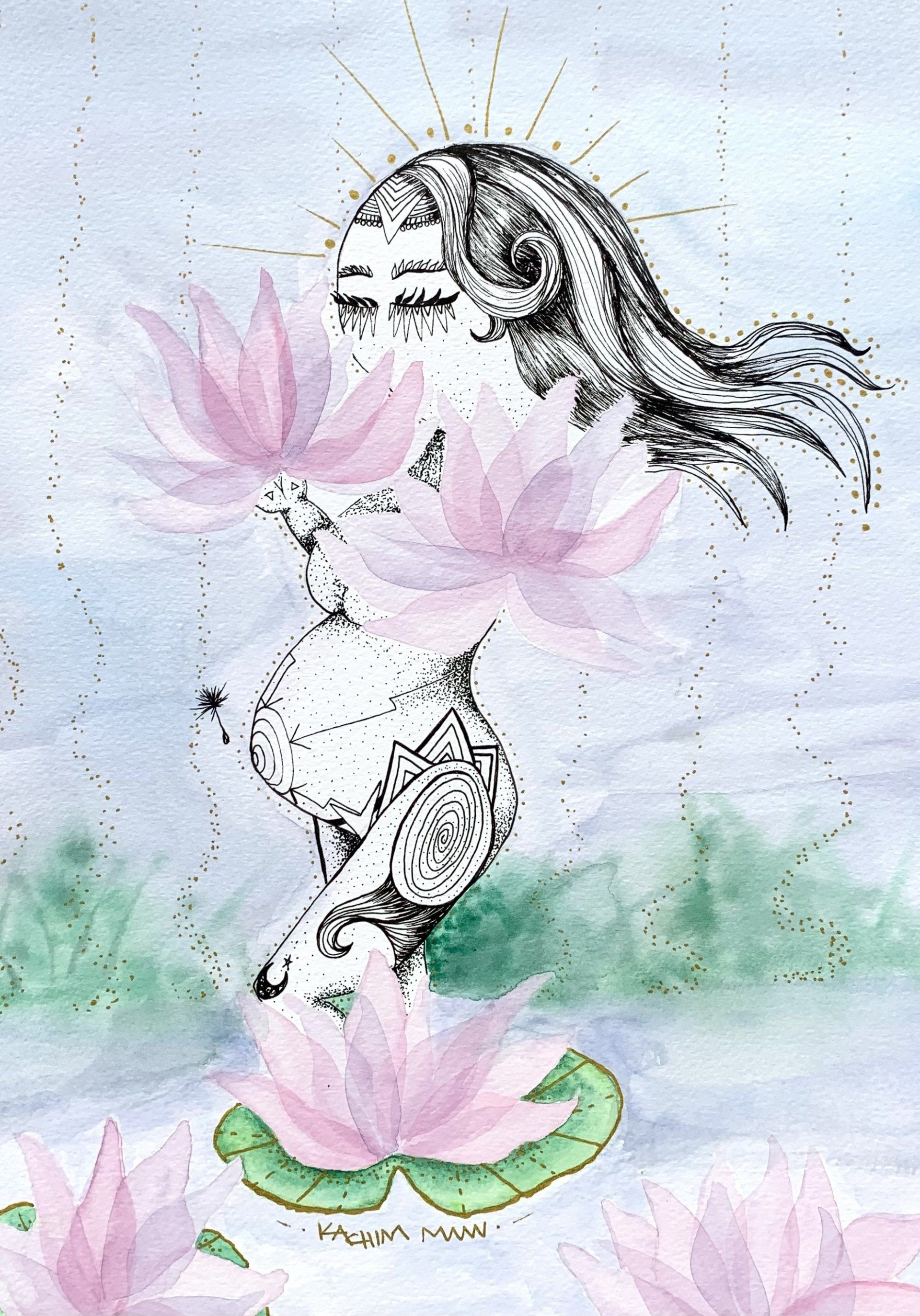 Veronica Larrea Chandler, Lotus Goddess - Ecuadorian-born artist, creates works that embody the power of raw femininity and Mother Earth. This piece is filled with symbols of healing, blessings and prayers inspired by the native cultures of North and South America.