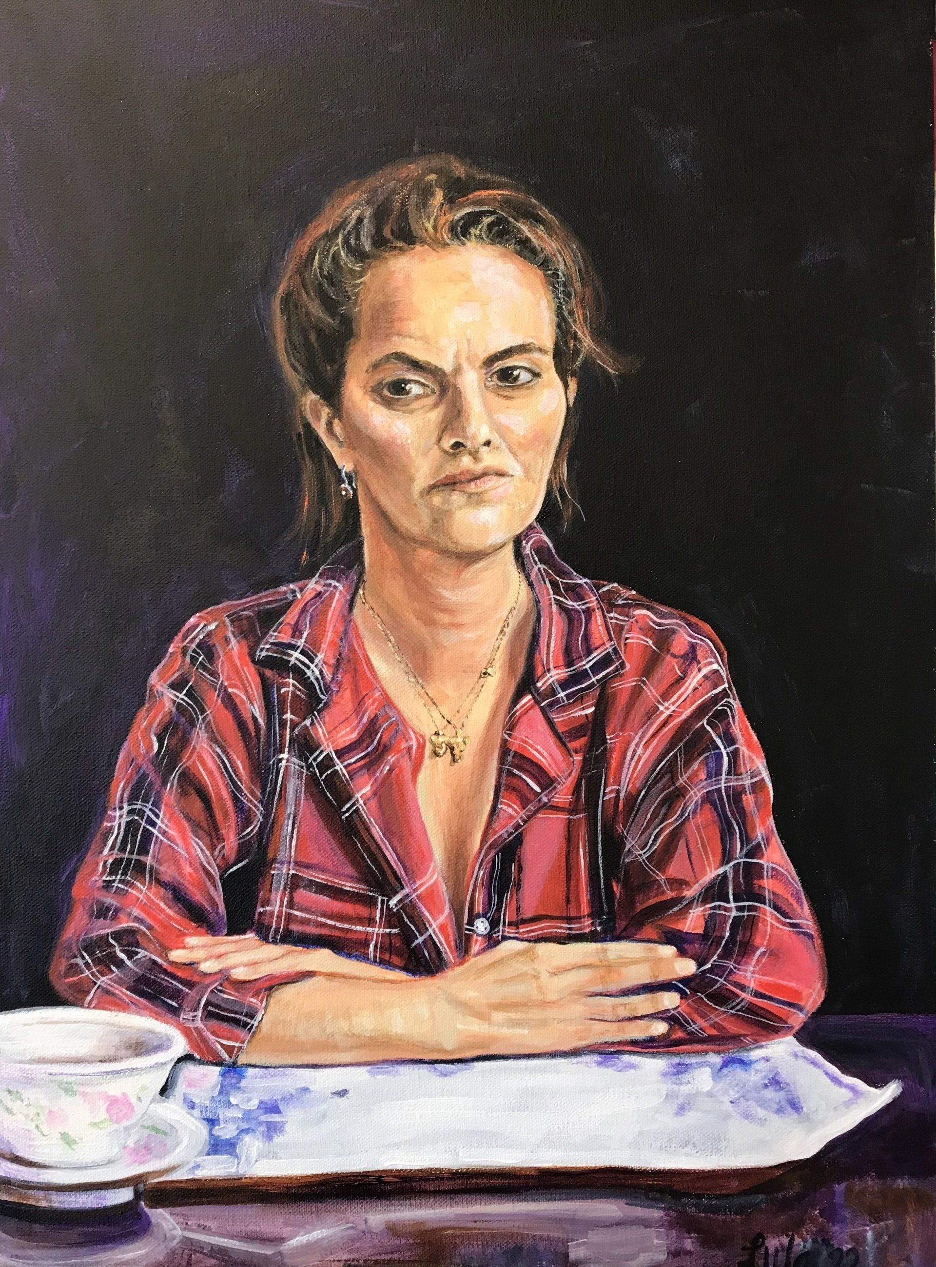 Louise Hynes, The Future in her Thoughts, portrait of Tracey Emin - This is taken from a photo by the brilliant portrait photographer Alun Callender who kindly gave me permission to use his photo. It’s a portrait of Tracey Emin from my home town of Margate, the artist, at a very difficult time of her life when she was being treated for “bad cancer” . I was moved by the look in her eyes , weary but fighting , the idea that the future is unknown we think we’re ok and then suddenly we’re not. We know she’s a strong woman but her vulnerability comes through in this portrait. I like her.