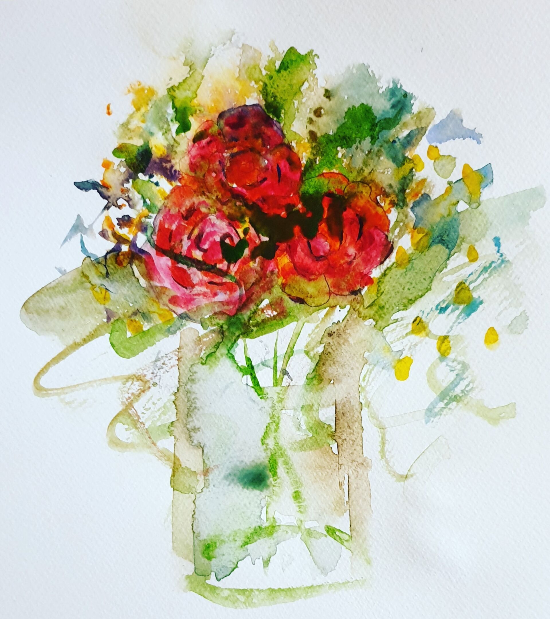 Cicci Grensner, Flowers to my love - Cecilia “Cicci” Grensner mostly paint with acrylcolors. But starting to painting with watercolors in the beginning of this year. This is actually one of her first watercolorspainting with flowers and the original is sold to England.