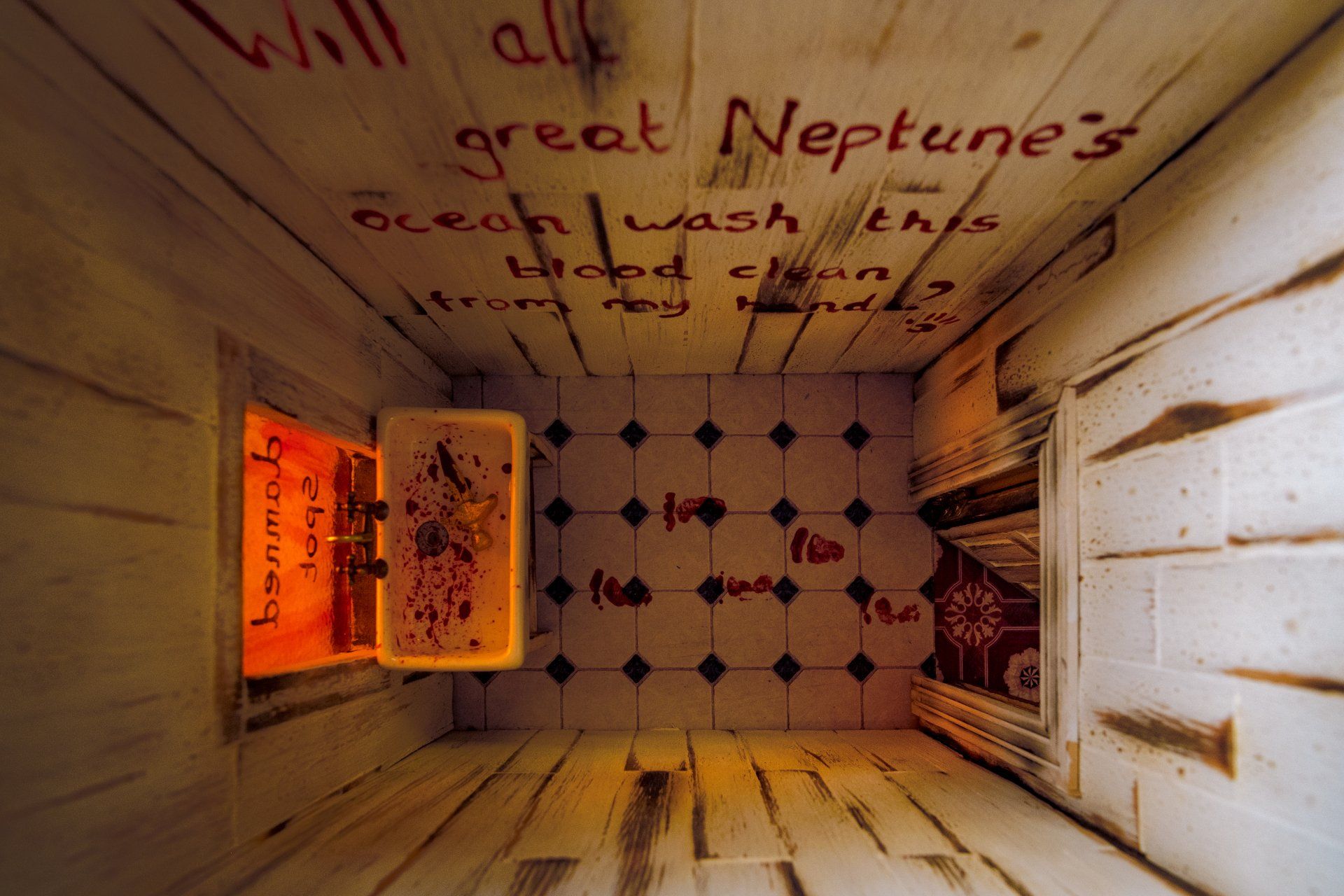 Louise Cunningham, Macbeth house - The Macbeth house allows the viewer to become immersed in Shakespeare’s play as they move from room to room using hidden keys and following bloody footprints. Each room contains one piece of removable jewellery that can be taken out and worn. The arthouses I produce combine my skills as a silversmith with my abilities as an artist. Using traditional techniques, I produce one of a kind art pieces that celebrate my passion for Gothic literature and jewellery.