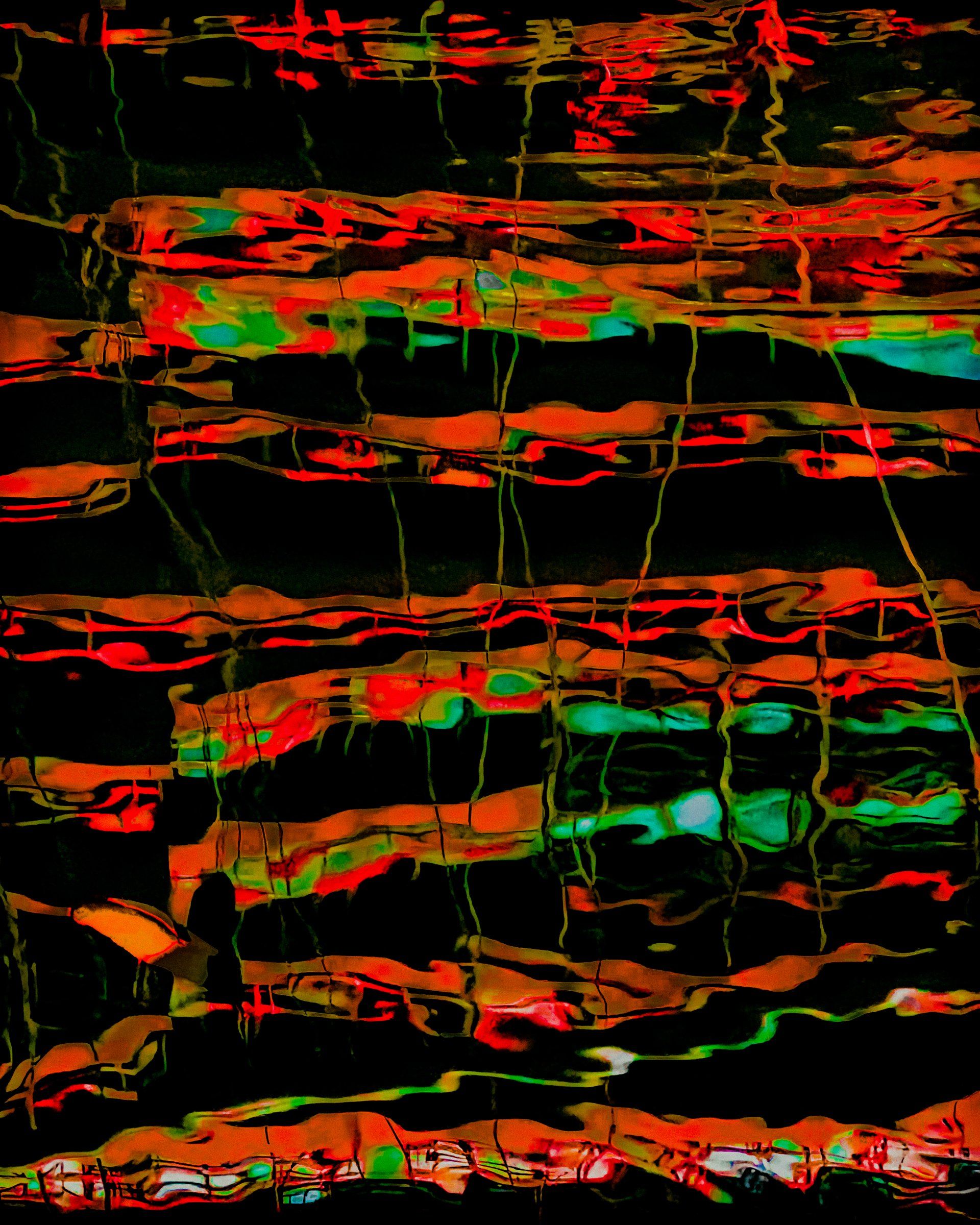 Alice Gur-Arie, Nav Lights: On, from the Reflections series - I called the series “Reflections” not only because it is based on repainted photographs of reflections, but also because of the second meaning of the word - to think, or consider. In my practice, which combines photography and painting, exploring what we see - what we think we see - is my focus. The result is achieved by treating my photograph as the canvas, interpreting as I repaint the picture by hand digitally in layers to achieve washes, and enlarging the image to paint pixel by pixel where detail requires.