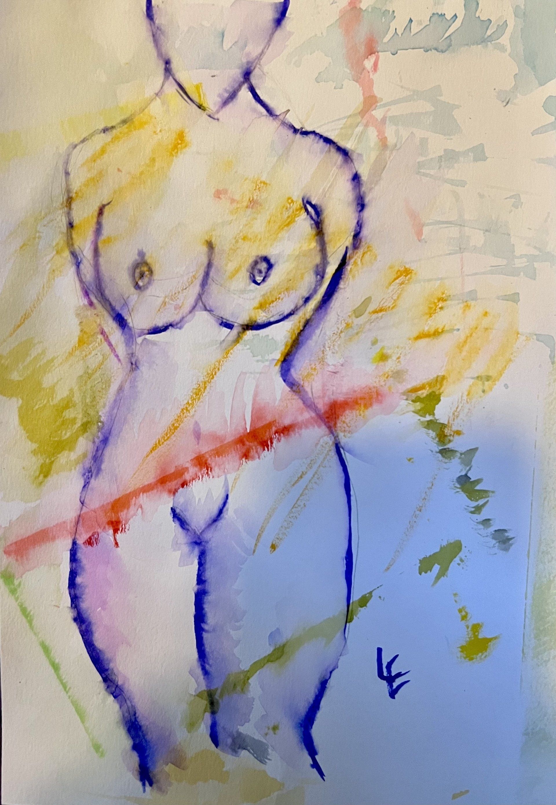 mirku, BLUE MOTION - Mirku is in love with dancing. “Blue Motion” tries to capture the beauty of the human body in motion. It might remind us how important it is to be connected with ourselves and our bodies. The technique is watercolor and ink on cardboard paper. The cardboard paper gives the watercolor this specific texture.