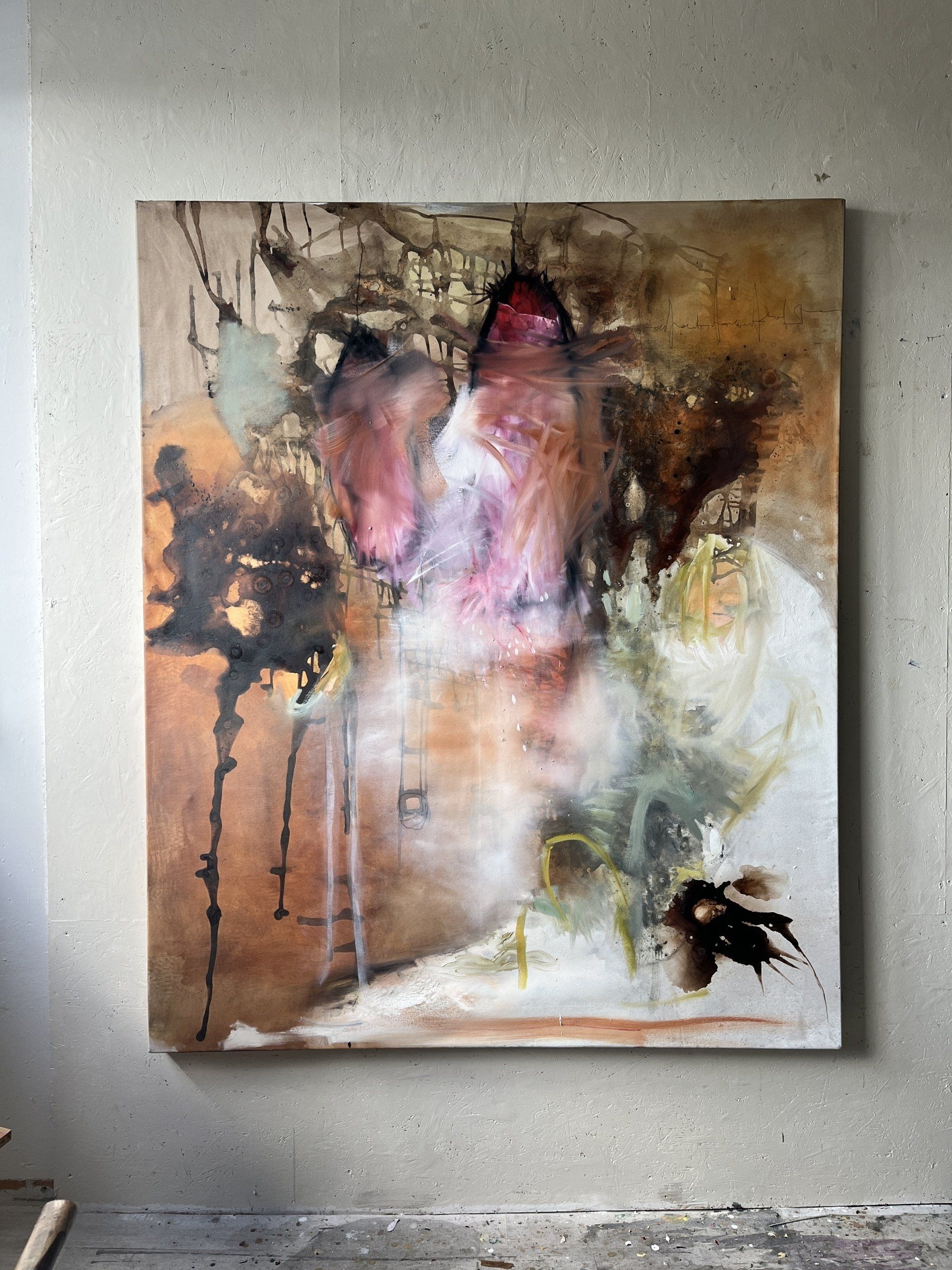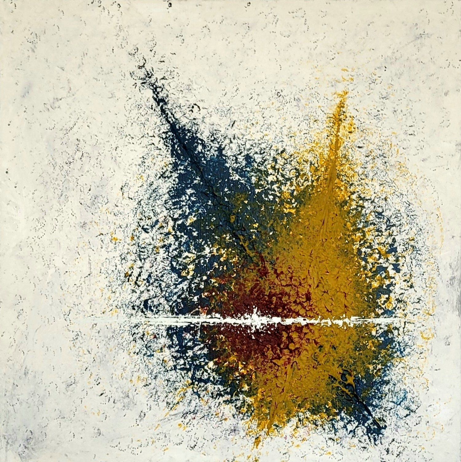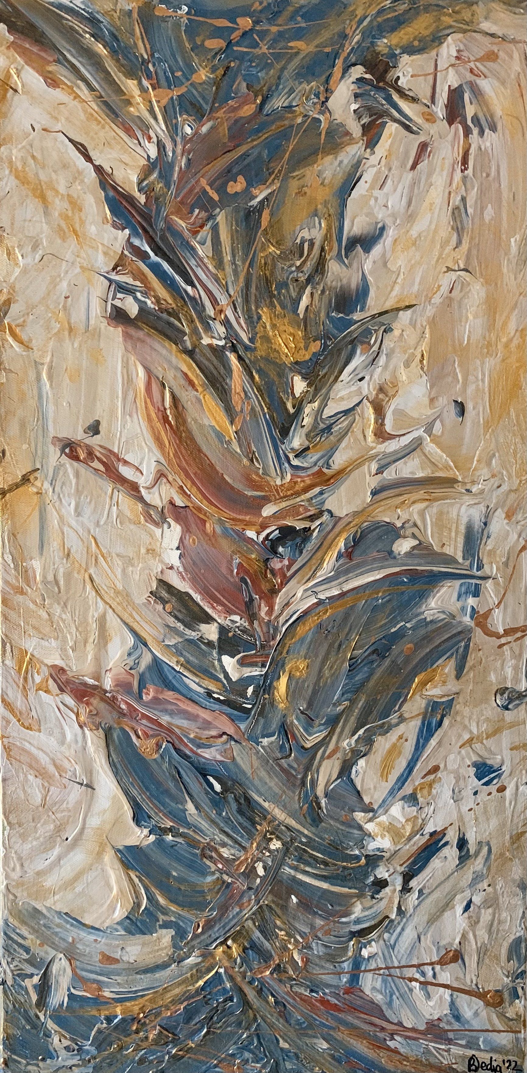Birke Dedig, Strong Backbone - As an abstract artist you never know beforehand what your painting will be like in the end. “Strong Backbone” was created in a time when I went through a lot of changes and challenges in my life. When I looked at the finished painting, I immediately realized that my soul was splashed out on the canvas before me. My painting reflected exactly what I was experiencing emotionally. Up to that point I thought I was just somehow getting through the rough patch in my life, barely hanging in there, somehow getting through each day. But when looking at my finished artwork I knew that I actually did much more than that: This hard time has made me stronger, had required me to get up no matter what and to keep going strong