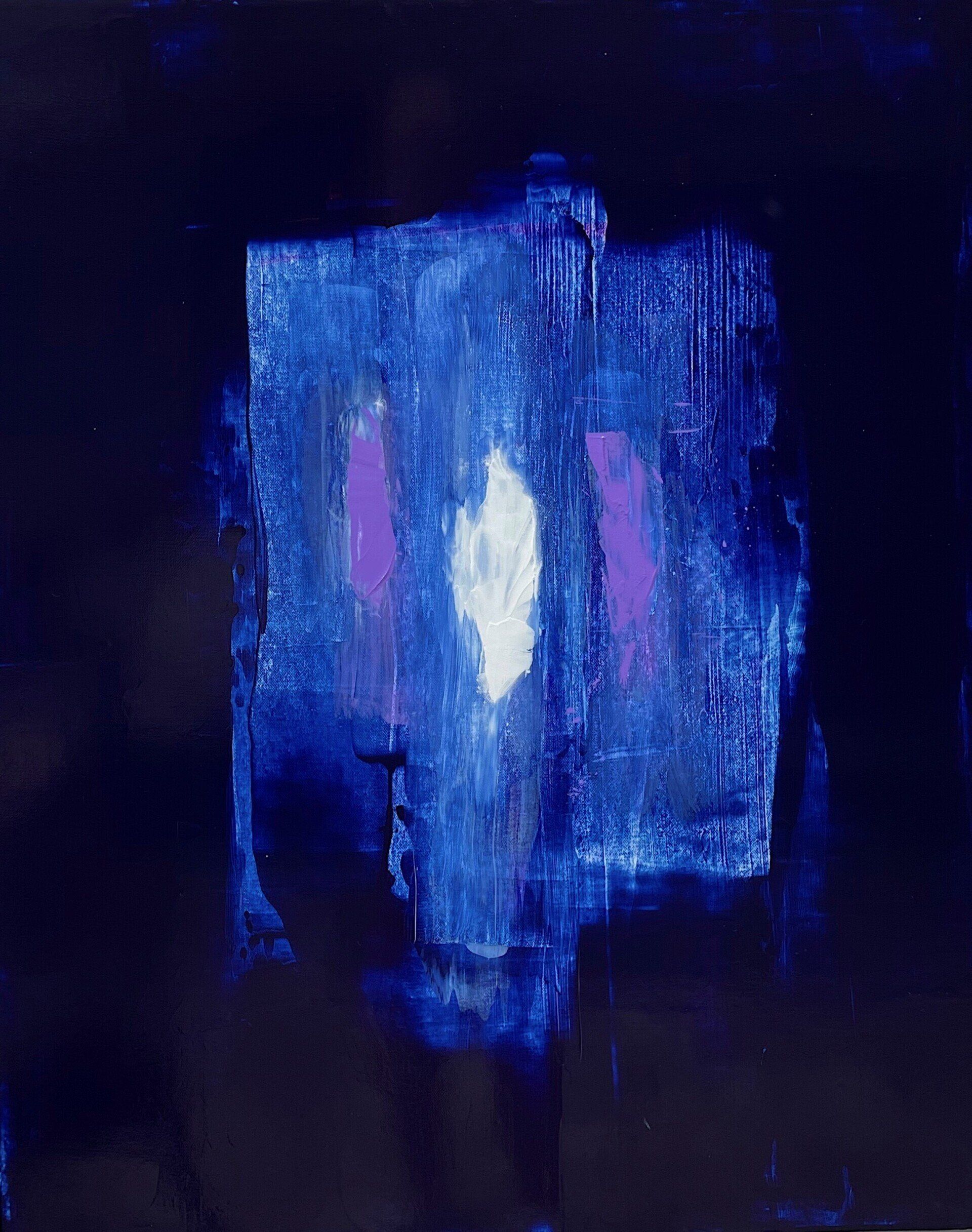 I love using the deep blue shades because they behave in the most beautiful way. In nature we see blue so often and it is a critical color in our world, however in this painting the blue transforms you to another place, where
