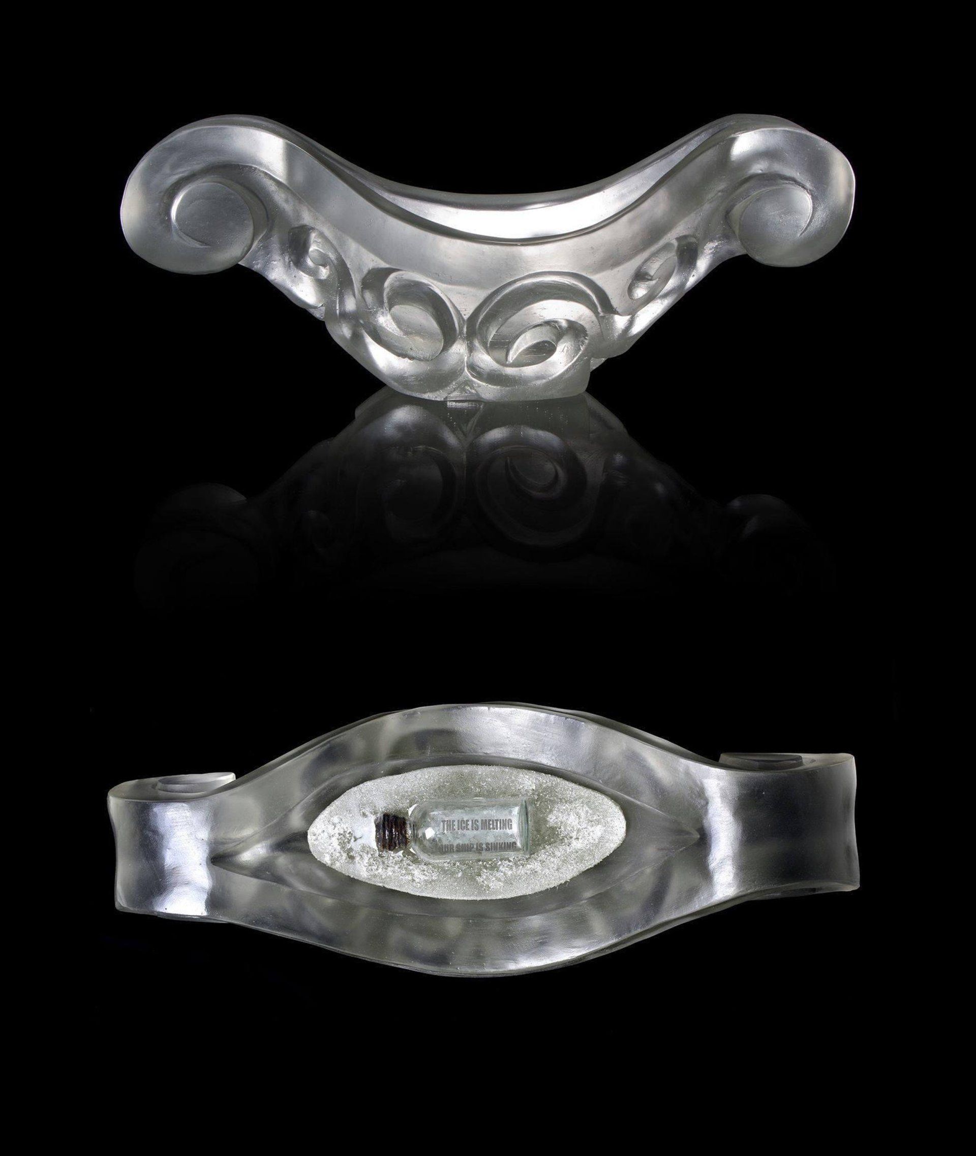 Steve Jensen, The Ice is Melting - For me, boats are meant to symbolize a voyage or journey. My parents are from Norway. My father and grandfather were fishermen. My other grandfather was a boat builder. Upon the death of both of my parents, I made a boat for their ashes and buried them at sea. Something like a contemporary Viking funeral. I also made a boat for my best friend and former partner of 24 years, again burying them at sea. These deaths were extremely tragic. My best friend died of AIDS, my father committed suicide with a gun, my mother fell apart emotionally and physically and my former partner from alcoholism. What I am attempting to do is to take something that was personally painful and turn it into something beautiful.
