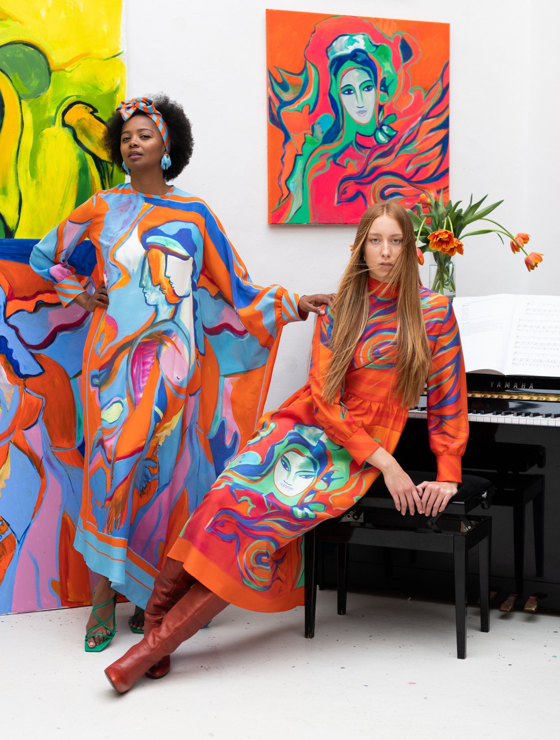 Stefanie Savary, ART&COUTURE - ART&COUTURE is based on the idea to convert exclusive artwork into unique dresses. I wanted to translate the feelings that arise from looking at a beautiful and touching painting into a wearable experience. What is wearable art? It’s more than a dress. We feel the art on our skin and blur the boundaries of the art experience. “ART&COUTURE” dresses carry the artist’s message and have an energy of their own. The image on the dress comes alive and lives its story on flowing fabric that gently envelops and accompanies the wearer. The visual medium is the woman and the dress - expanding the frame of reference and adding to the appreciation of the entire artwork. Photo: Eva Kruiper / Canvas: Joelle Meissner.