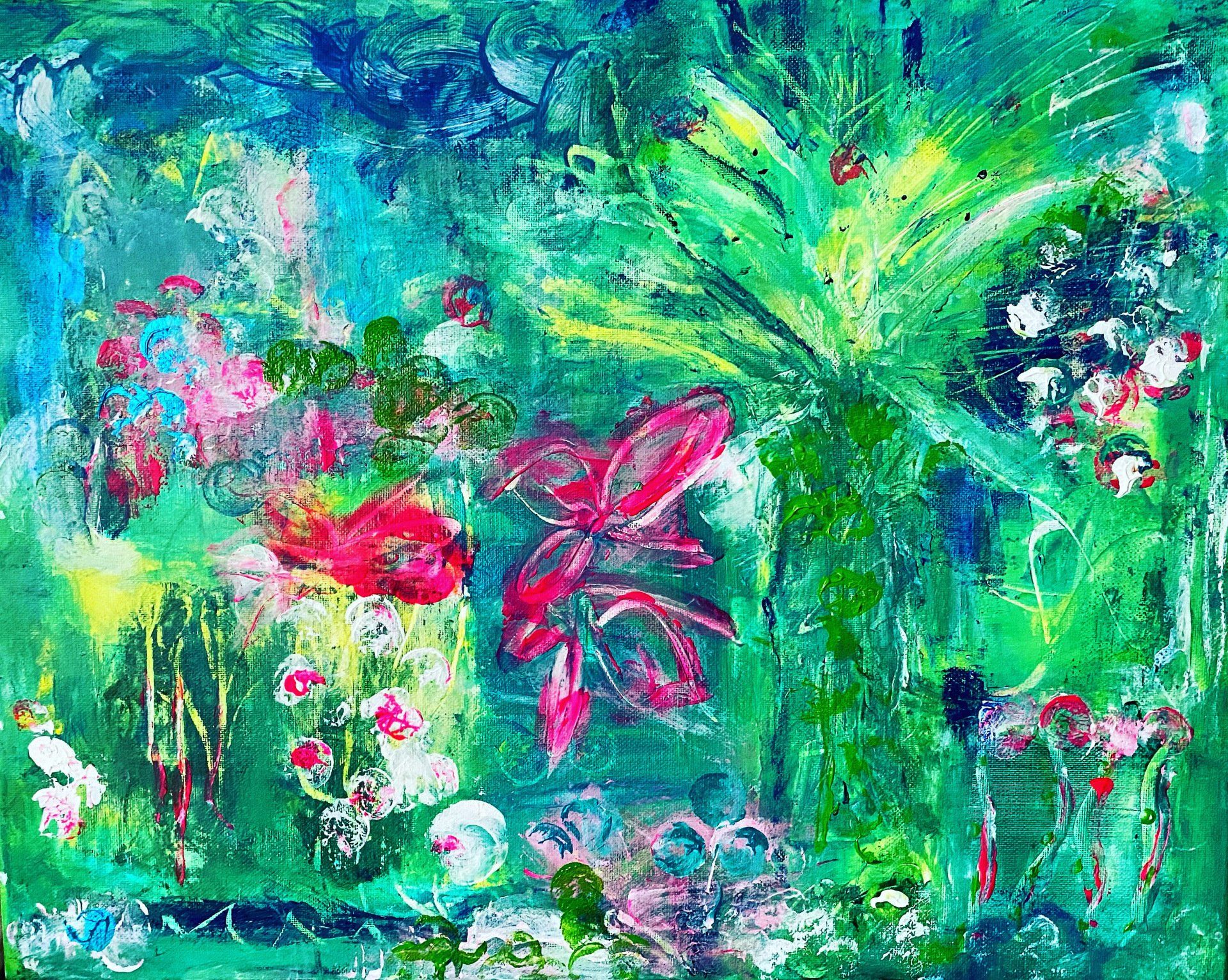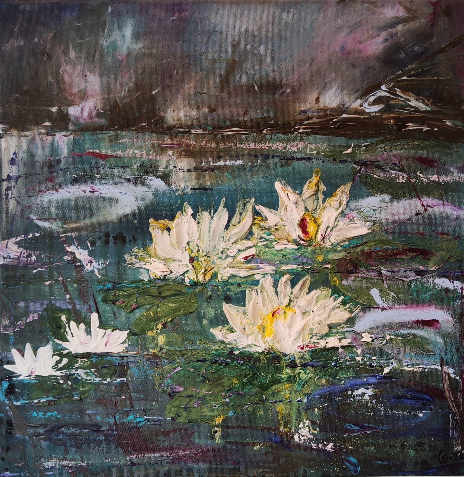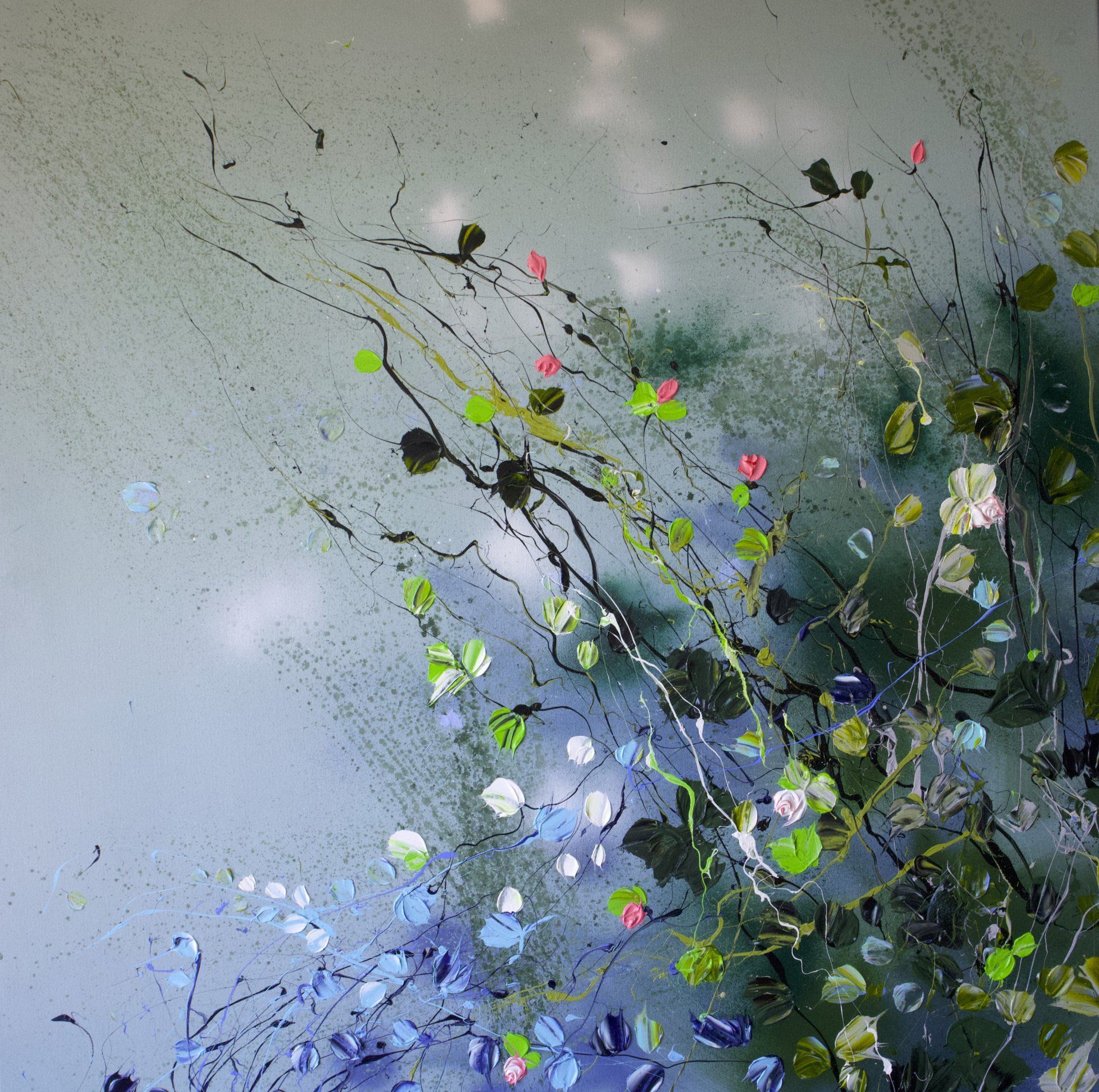 According to Eckhart Tolle „Flowers are like messengers from another world. Like a bridge between the world of physical forms and the formless. They exude not only a subtle smell, pleasant to people, but also an aroma from the kingdom of the spirit. In this way she would like to invite the viewer to immerse themselves in a colorful yet calm world of impasto colors full of meditative floral magic.