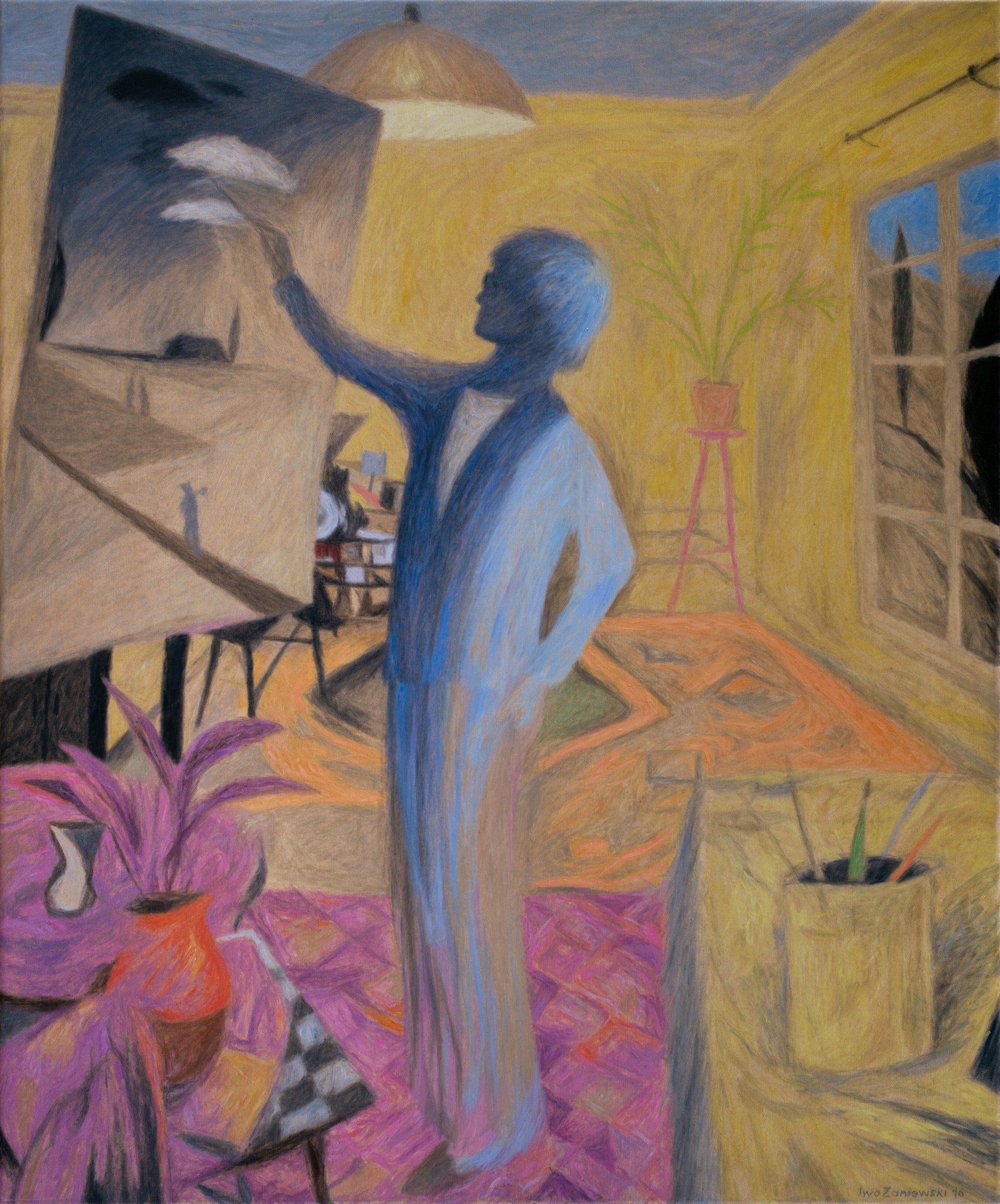 Iwo Zaniewski, Painted Chinese - Is a part of an ongoing series of mine, centered around my quest for a perfect harmony. I work with traditional oil painting, predominantly focusing on matters of composition. I consistently explore formal relations and draw on the history of figurative painting, portraying subjects from contemporary, everyday life. In order to reach the state of perfect visual harmony—my ultimate goal—I have been constructing my works in a way that each element of the composition becomes irreplaceable support for the arrangement of others. In collaboration with theoretical physicists, psychologists, and neuroscience researchers, I designed the Algorithm of Harmony—a concept illustrated by a mathematical formula.