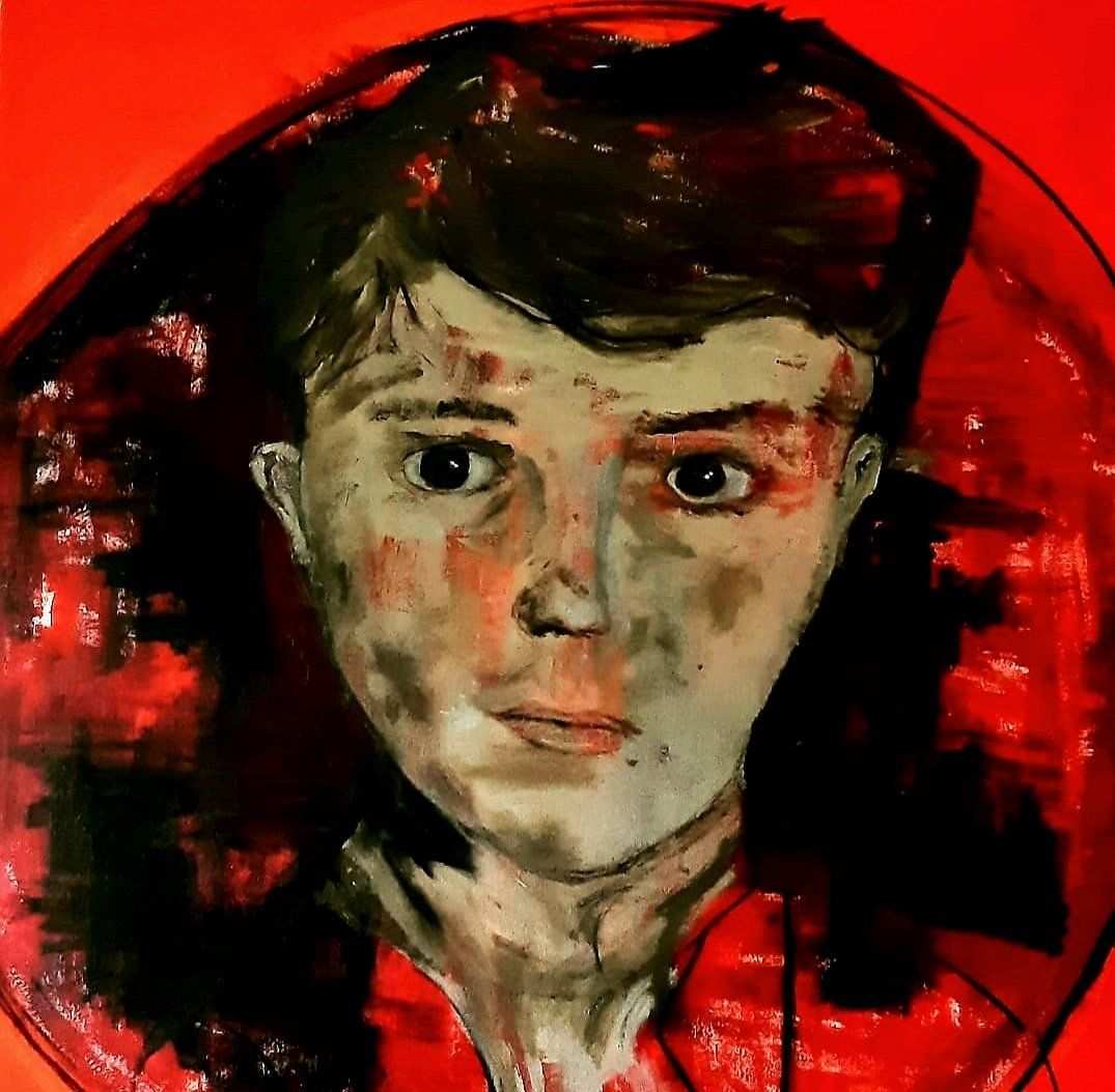 Iris Katharina Salzburger-Lindlar, Child Soldier - This painting was made after I read a report on child soldiers entitled ‘The Lion Cubs Homecoming’, in the summer of 2016, about ‘The Lion Cubs of Saddam’, the then child soldier unit that emerged after the Iraq-Iran War. The article reported on the ‘Islamic State’, which in Iraq and Syria had in its power thousands of little boys and they had been taken from their usual living environment. The approximately 11-year-old traumatized boy ‘Wahad’ photographed there didn’t get out of my head for years with his cruel, experienced story and at the end of 2021 I followed the wish I had internalized for years, although not an audible one for him, who managed to escape voice but to give a face.