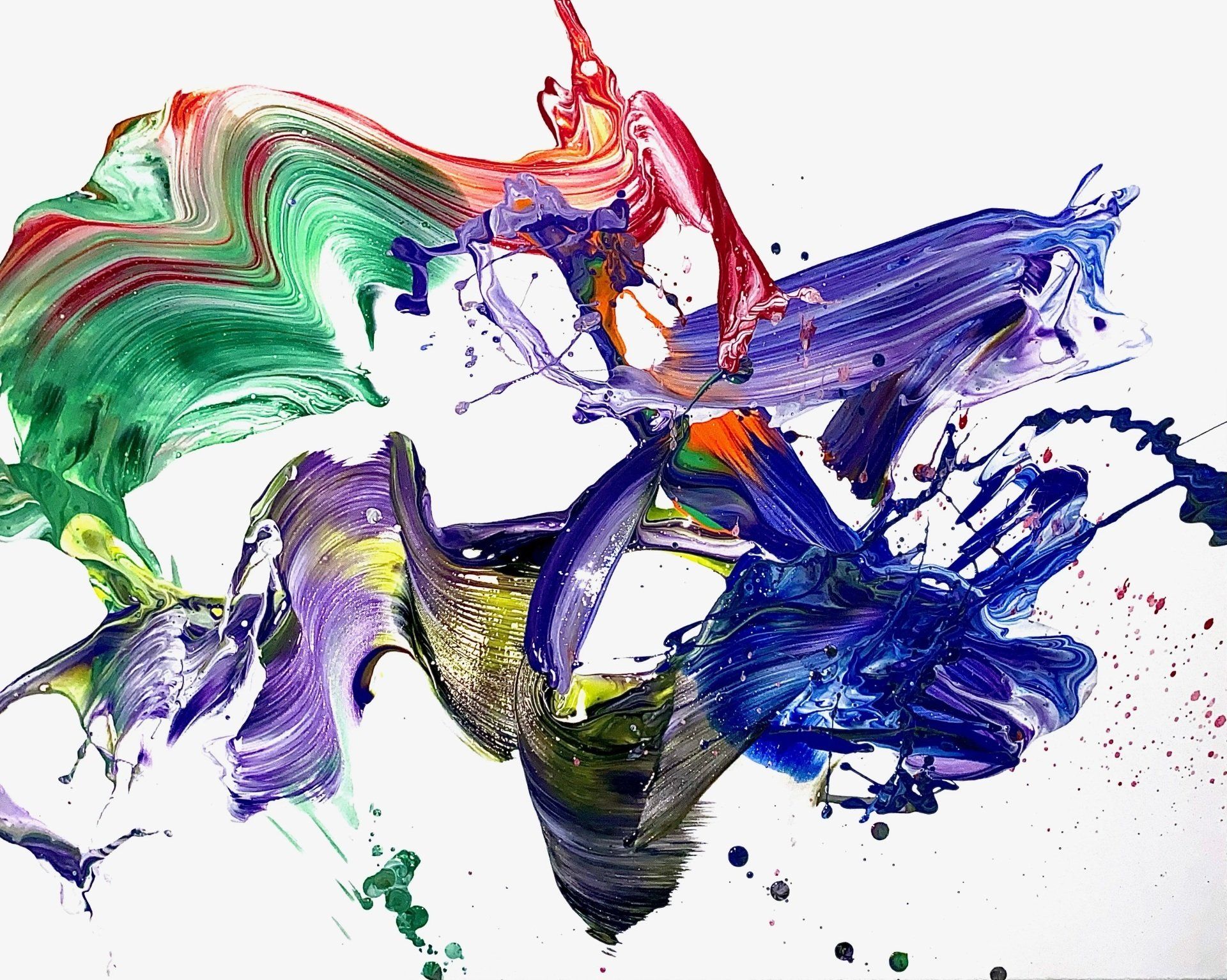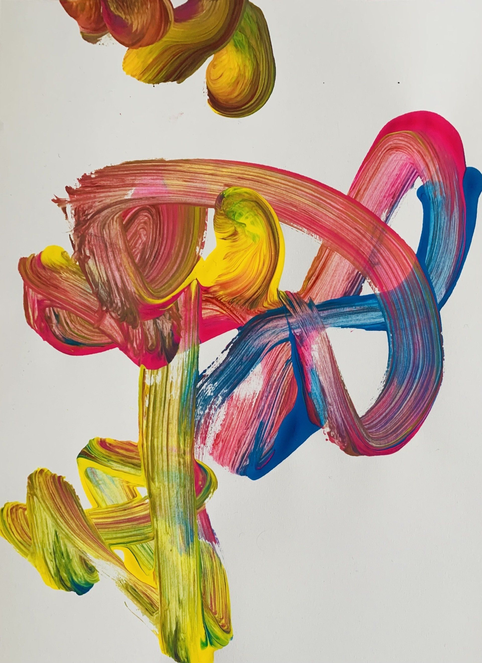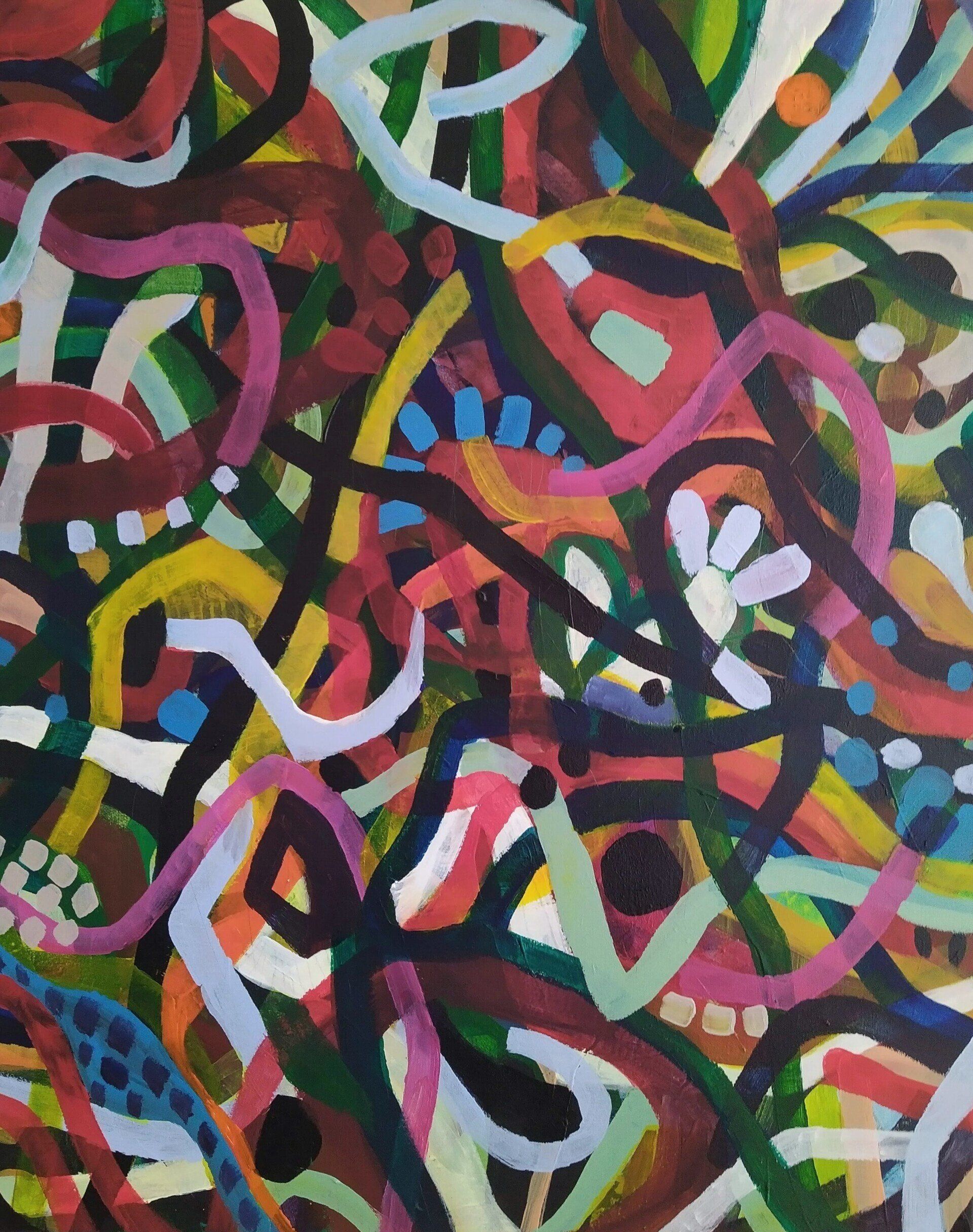 Stuart Beck, Untitled No.13 - This original abstract painting in acrylics was commissioned in 2021. It is a large scale painting at 183cm x 122cm. The main brief was to include some bright colours. As with many of my commissioned pieces, I view them as collaborations because I discuss my previous paintings with the customer and try to find the elements that draw them to my work.