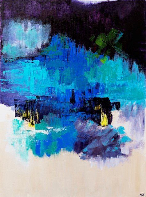 KON ART, Noches de Ibiza / Ibiza nights - Acrylic abstract art, mixed media original painting on canvas. Paint protected with matt varnish. Inspired by the light that projects the nights of ibiza over the sea. The good energy of the island.. 60x 81 cm