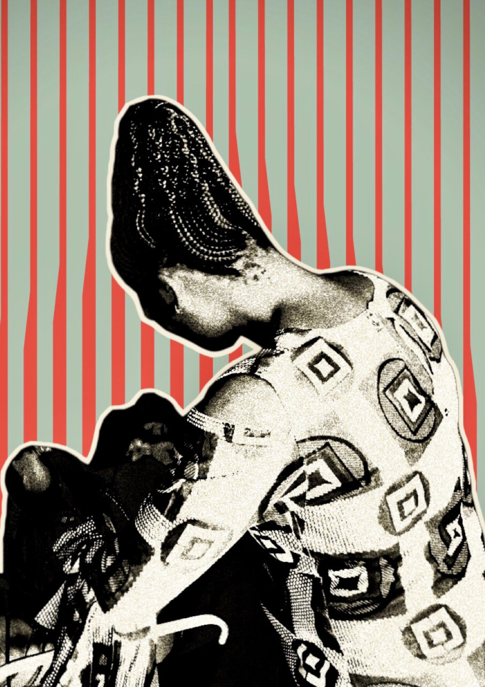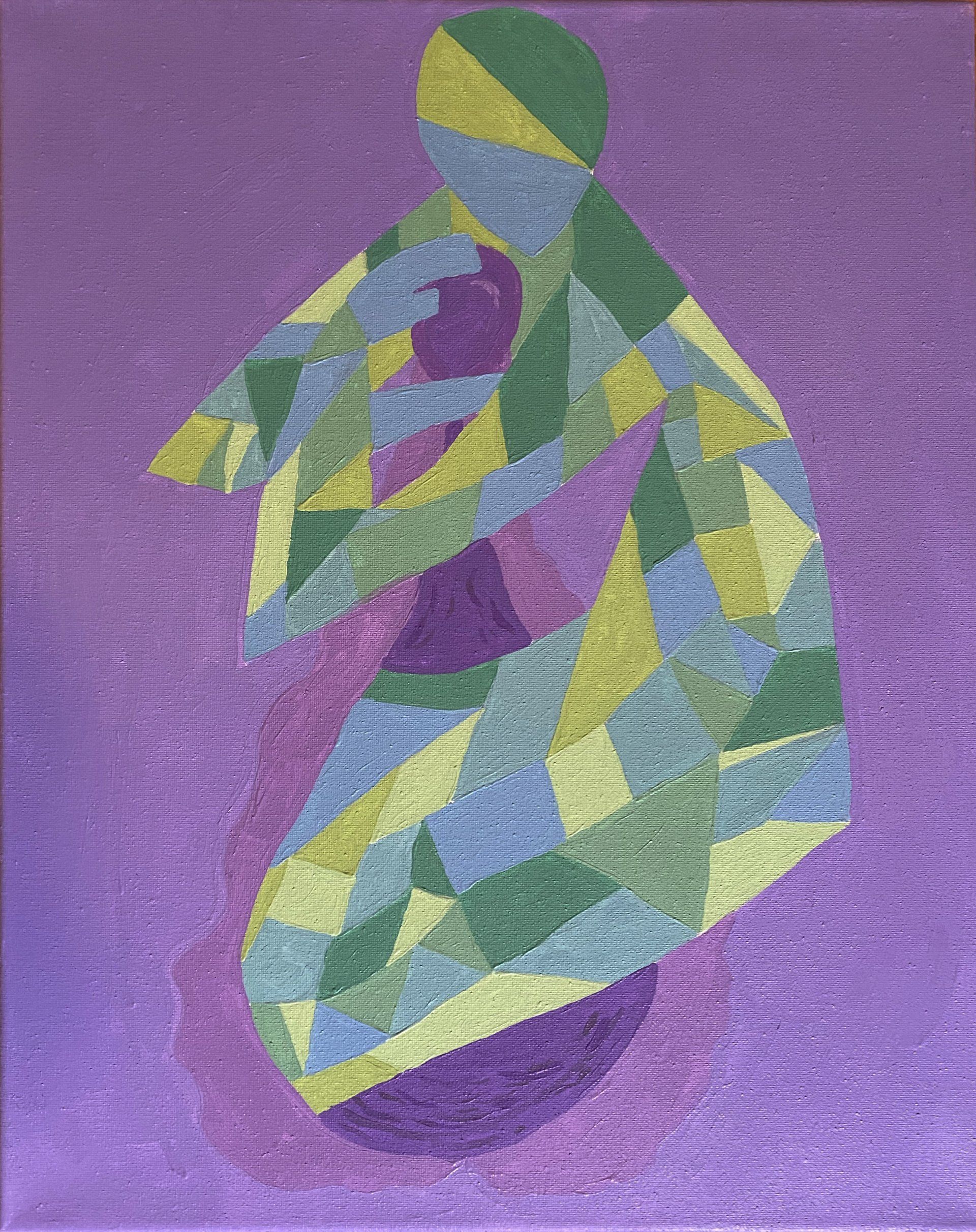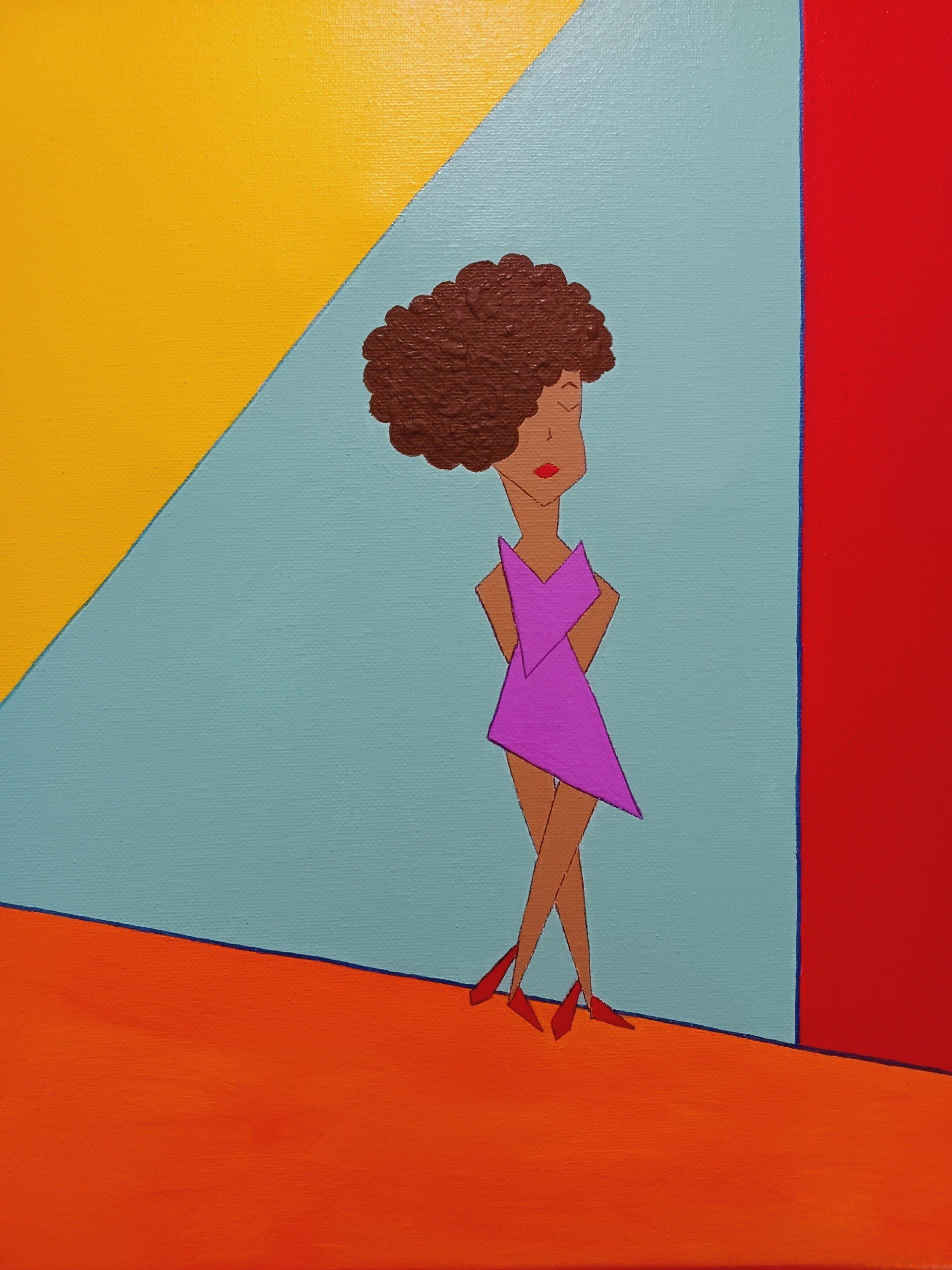 Nytia Jenkins, Pretty Abstract Piece II - This abstract piece consists of a woman posing in a geometric themed outfit and background. Combining art with fashion, the color choices and shapes are meant to draw attention to the details and engage the viewer.