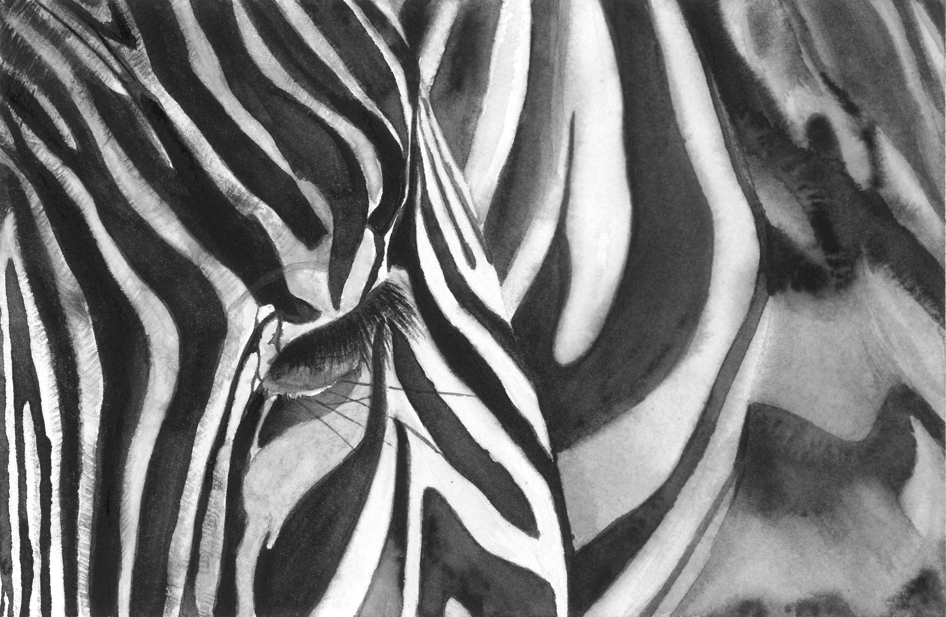 Stephanie Raj, Striped Equine - ‘Striped Equine’, Watercolor on paper is part of my wildlife series inspired by the photography of Jacob James. The composition captures the irregular stripes of the zebra in an abstract manner, drawing the viewer’s attention to focus on the stripes. This series allowed me to be drawn to the ordinary things that are captured in an extraordinary manner that we often do not observe.