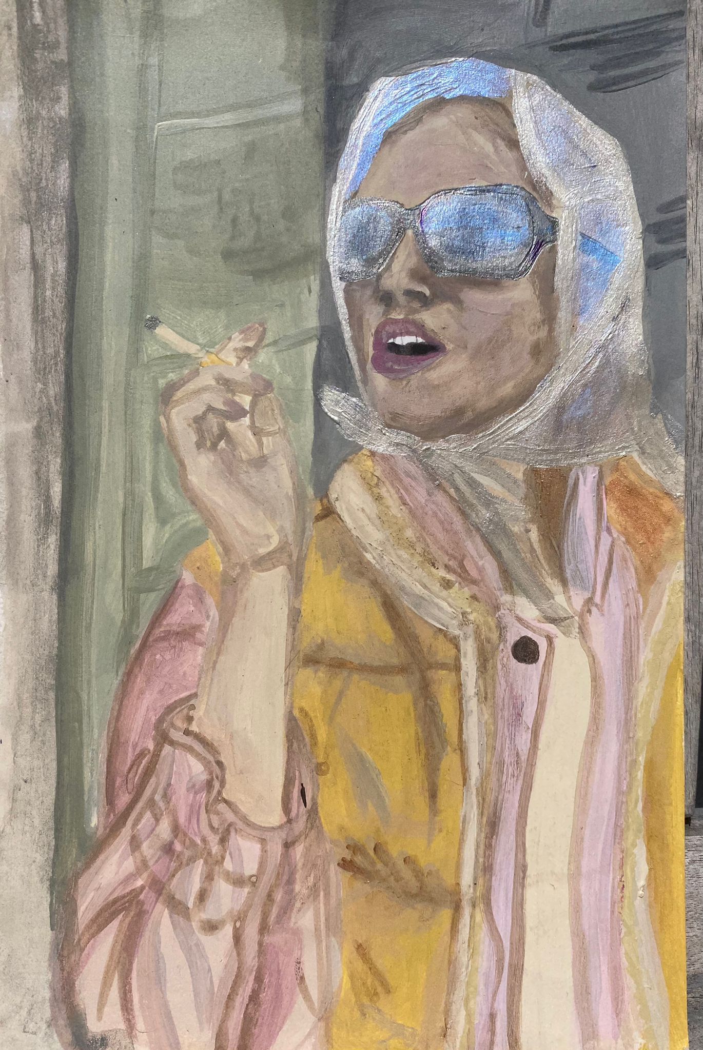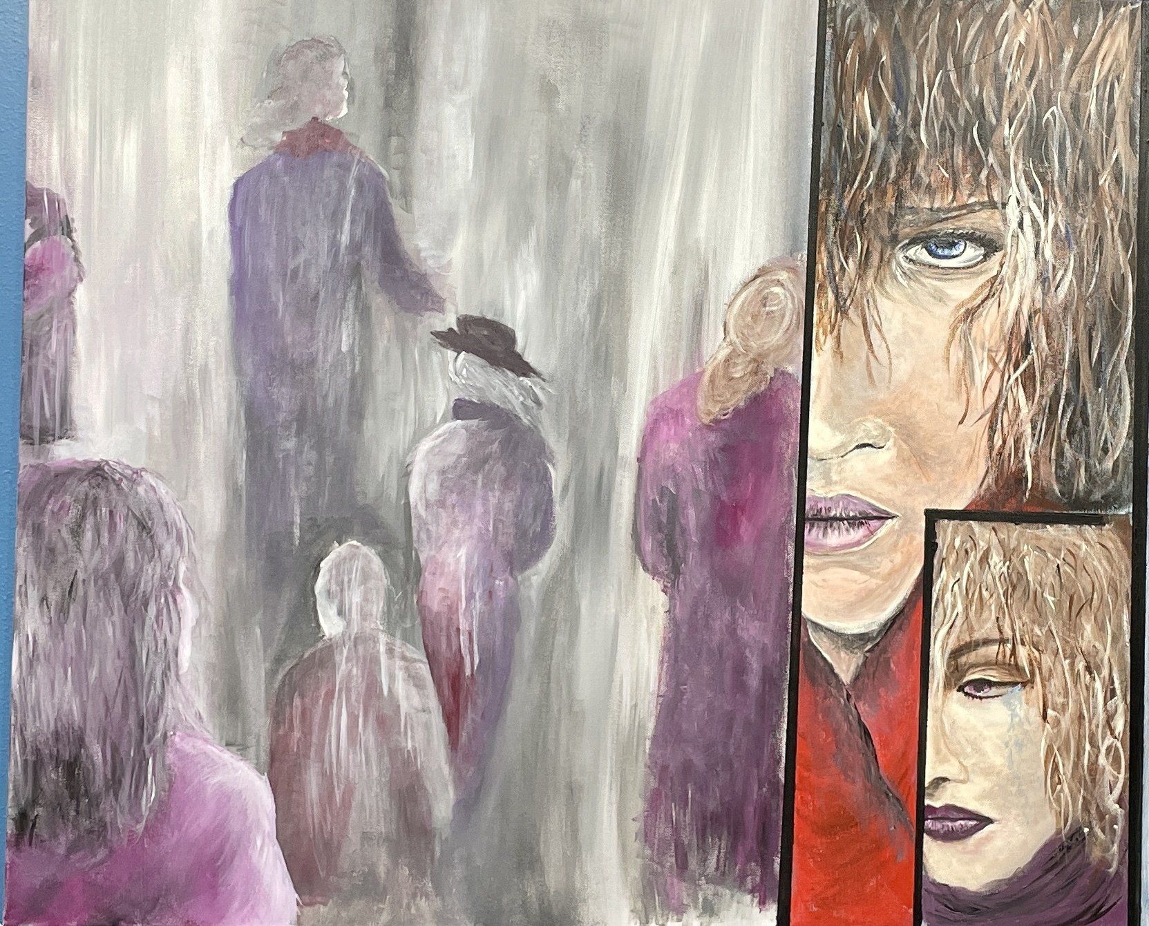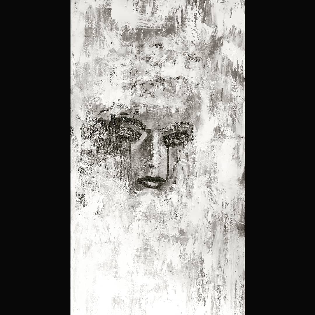 Iris Katharina Salzburger-Lindlar, Life and all its suffering - This painting seems to depict an attitude to life of our time. Although it was created in 2015, I have never been able to develop such a strong connection to this work as I have before. In the creative process, the artist’s ego often defends itself against these forces, which the picture can produce, but the last two years in particular have opened my eyes to this through the increasing borderline experiences of the pandemic. Persistent exhaustion redraws our faces and quietly gnaws at our hearts. We seem more trapped in a nebulous state than smugly wrapped in cotton. Who couldn’t despair about it and give room to tears?
