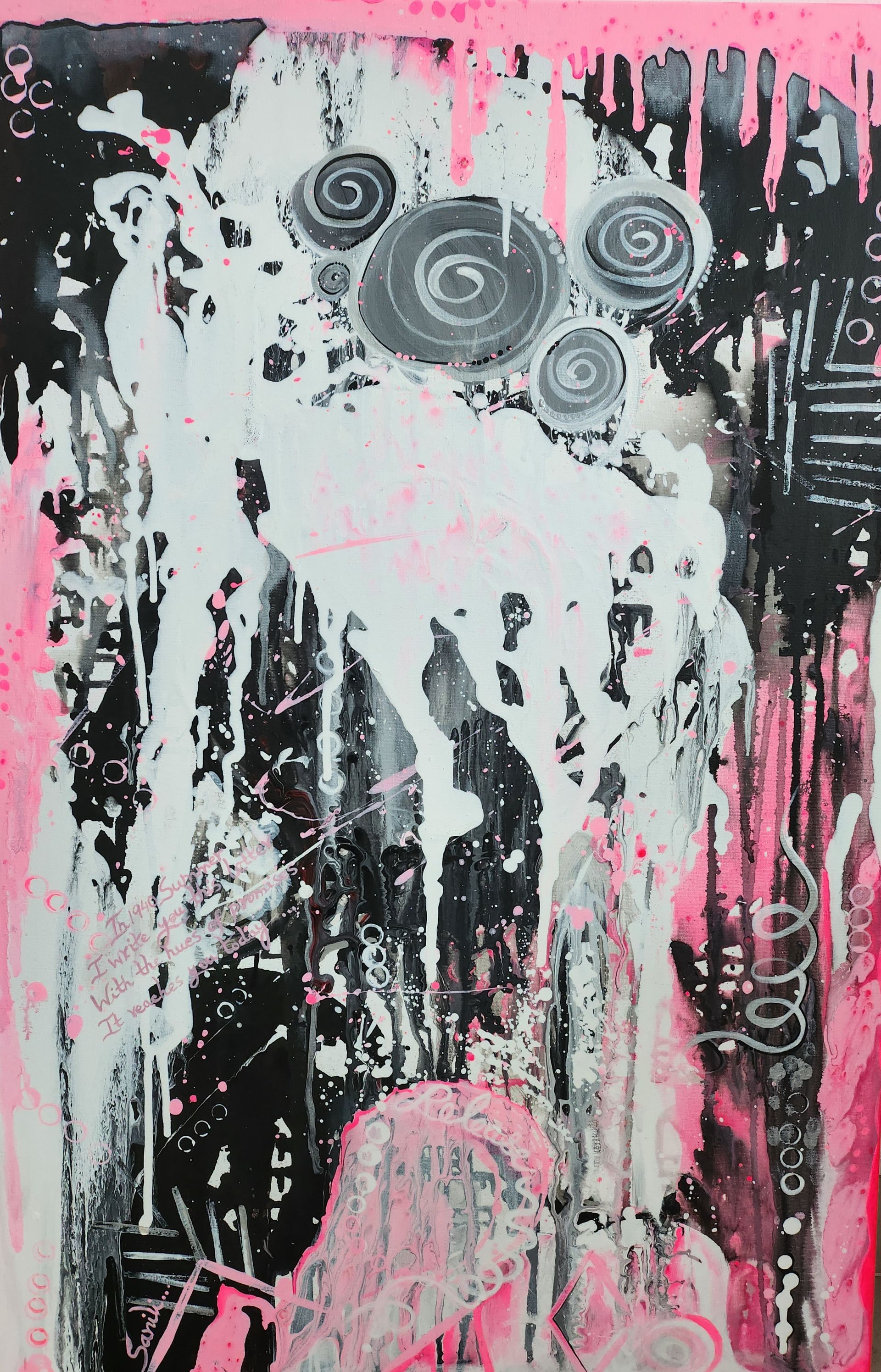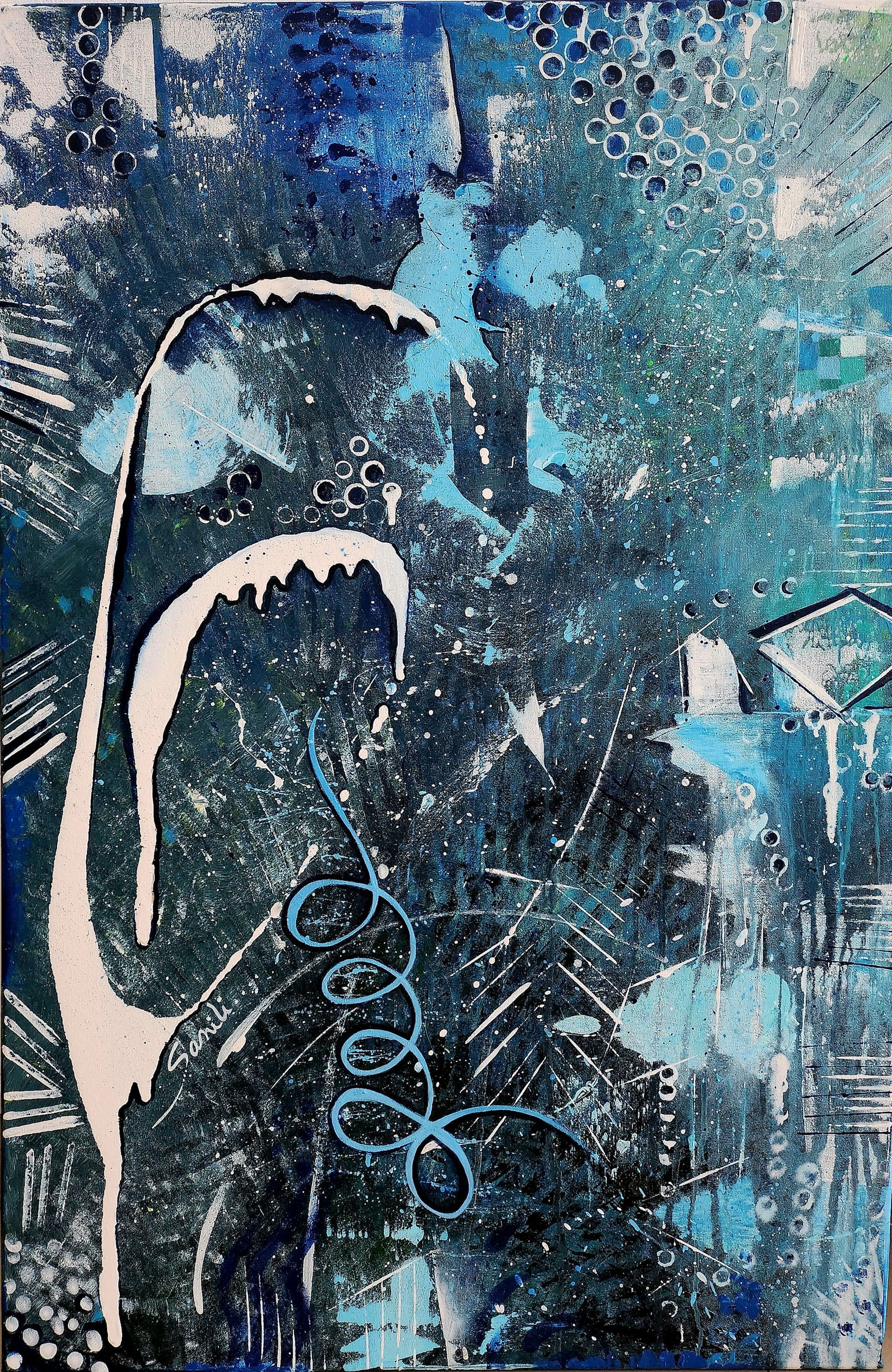 Working primarily with acrylics and in two distinct styles, Sanili enjoys combining the elements of abstraction, figuration and the symbolic imagery of surrealism. The eclectic and soothing tones combined with the techniques of underpainting, pouring, dripping, layering, and glazing aim to evoke a sense of a serenity, spiritual revival, peace and purity.