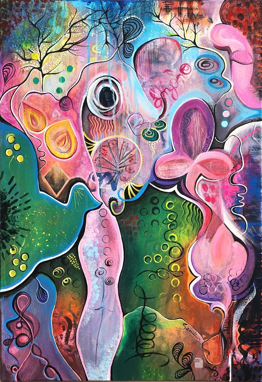 Sanili draws inspiration from diverse sources--- poetry, yoga, music, abstraction, feminine energy and the indomitable human spirit. For her, art is not merely a visual expression; it is a spiritual journey. From this journey, her visual narratives emerge, creating a captivating rhythm through the play of colours, mediums and textures. She has exhibited her artworks in several exhibitions, celebrating life and its richness.
